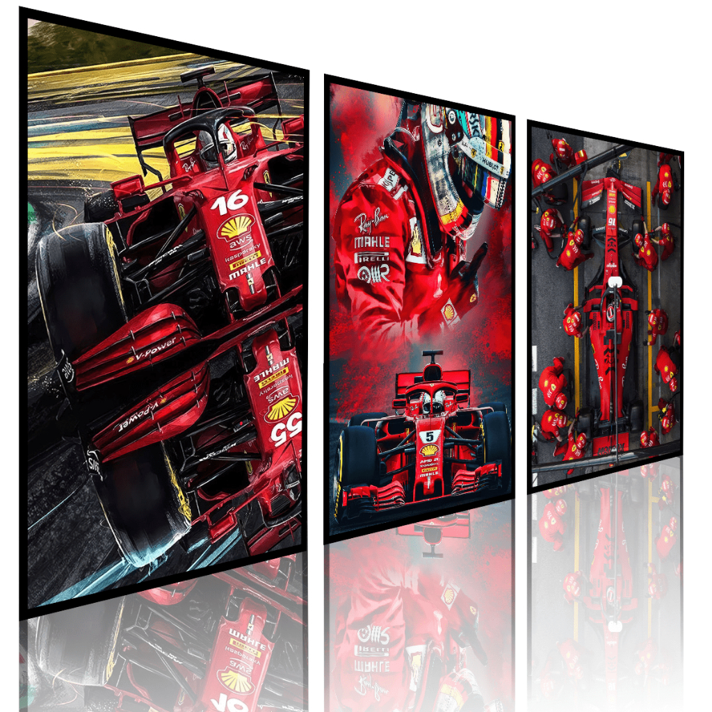 Kit 3 Quadros Decorativos Apaixonados por F1 Corrida Ferrari