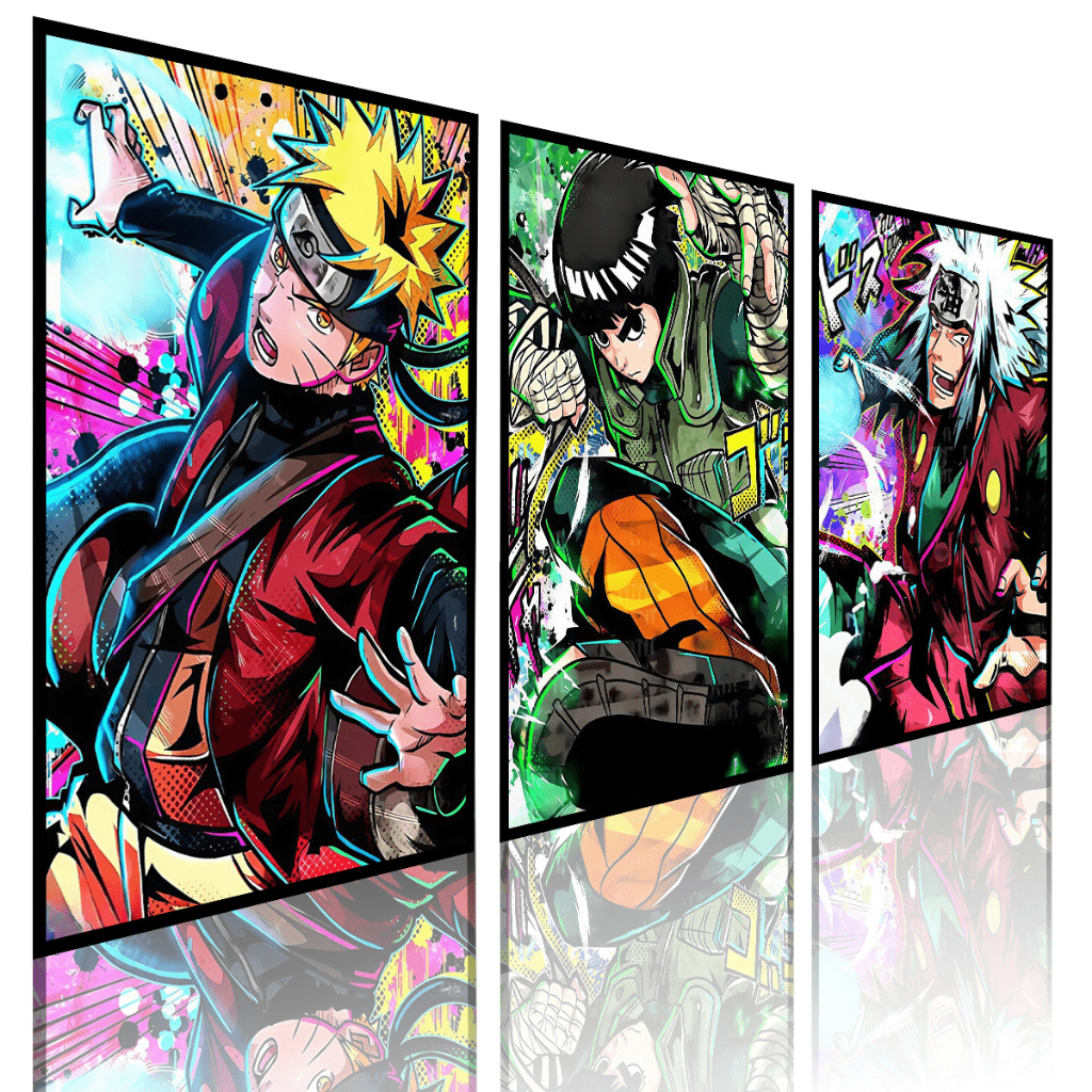 Kit 3 Quadros Decorativos Arte Anime Naruto Jiraya e Rock Lee