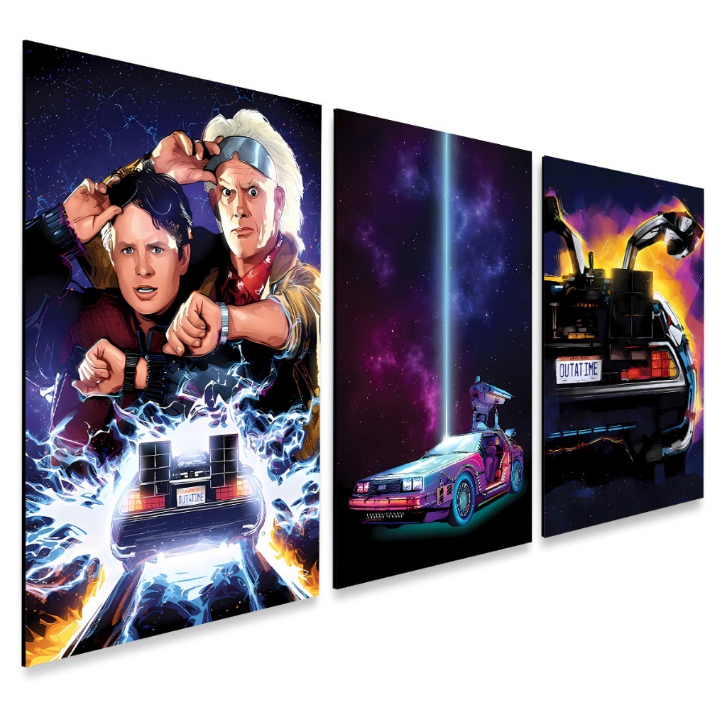 Kit 3 Quadros Decorativos De volta Para o Futuro Arte Exclusiva Filme