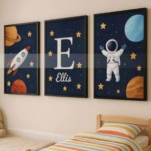 | Kit 3 Quadros Decorativos Infantis Astronauta Espaço Personalizado ... este produto | R$ 27,90 | 39% | 5.0/5 | 4 |