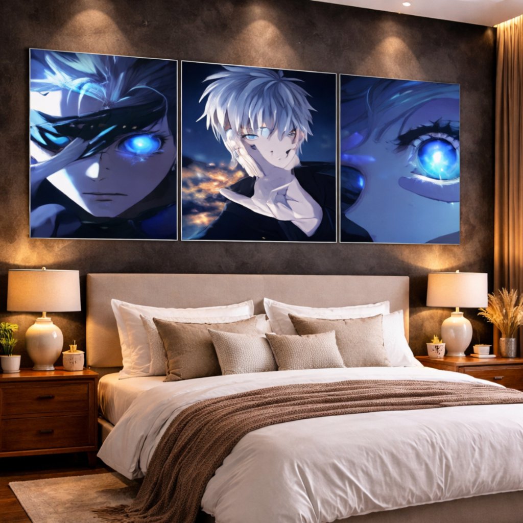 Kit 3 Quadros Decorativos Satoru Gojo Anime Jujutsu Kaisen Seis Olhos Excelente Qualidade