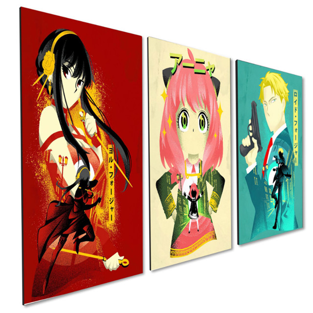 Kit 3 Quadros Decorativos Spy X Family Loid Anya Yor Poster Anime
