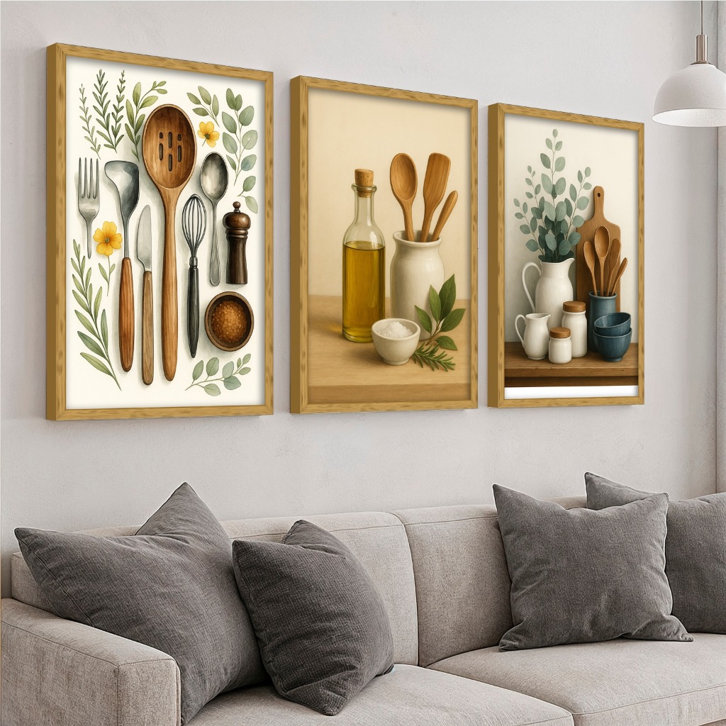 Kit 3 Quadros Decorativos Utensílios Cozinha Gourmet Moderno Sala Jantar Parede Exclusivo