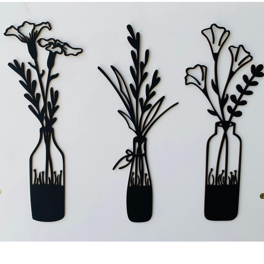 Kit 3 Quadros Flores na Garrafa Decorativo Mdf 3mm