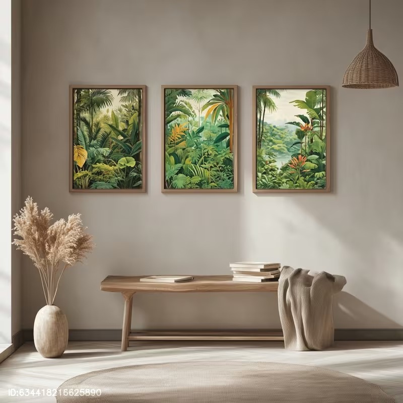 KIT 3 Quadros Floresta Tropical Vintage | Pintura Botânica Jungle Decoração Sala