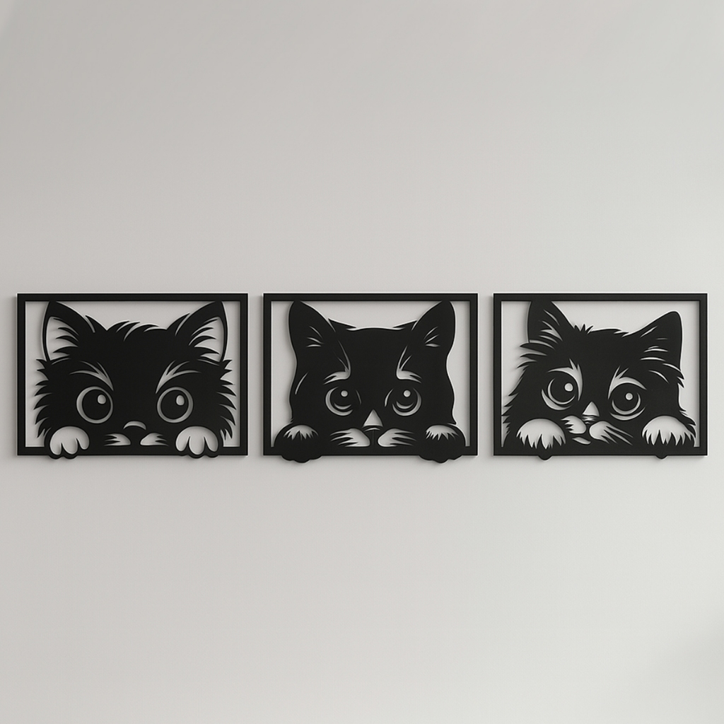 Kit 3 Quadros Gatinhos MDF Cru Silhueta Decorativa Para Quarto