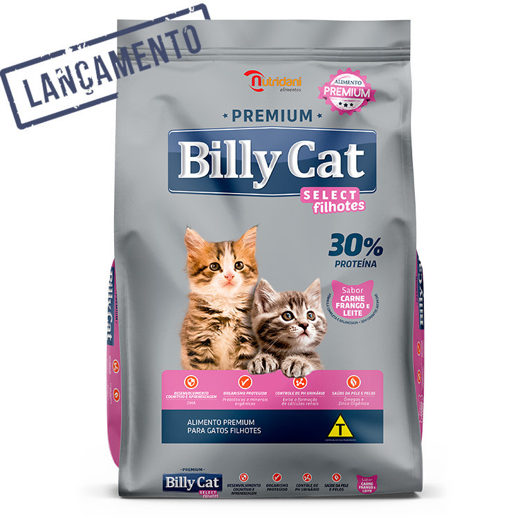 KIT 3 Ração Billy Cat Filhotes Carne Frango e Leite 1kg