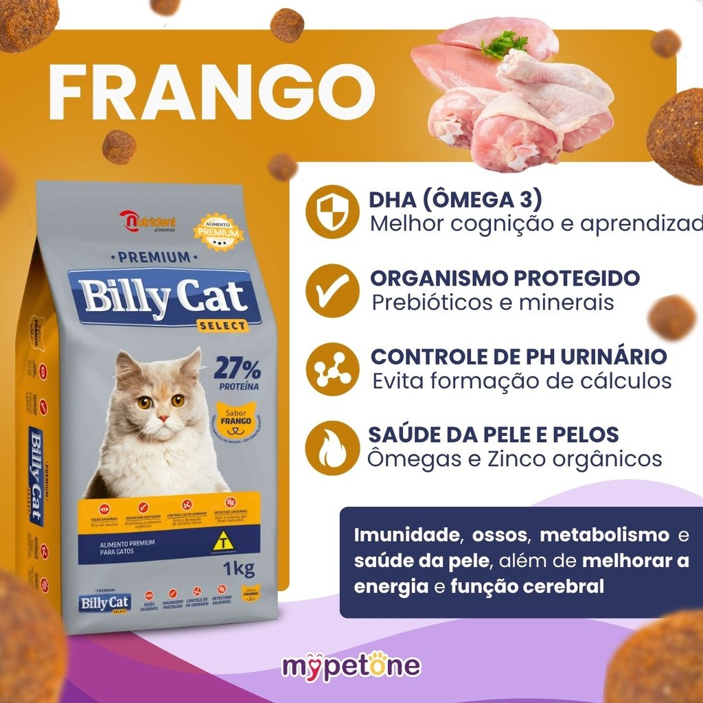 Kit 3 Ração Billy Cat Select Gatos Adultos Frango - 1Kg