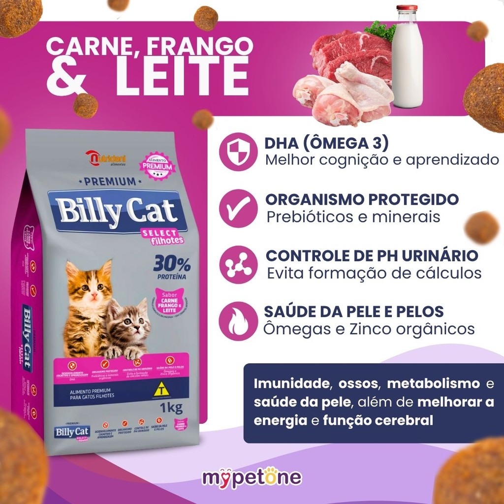 | Kit 3 Ração Billy Cat Select Gatos Filhotes - 1Kg este produto | R$ 39,90 | 19% | 5.0/5 | 3 |