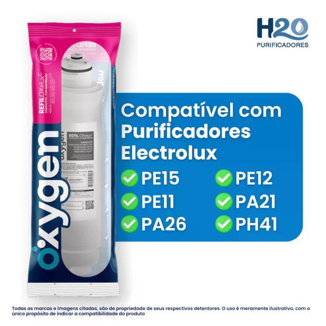 Garanta água pura e de qualidade para toda a sua família com o Kit 3 Refil Filtro Oxygen Compatível para Purificador Electrolux! Uma solução inteligente e econômica para manter seu purificador Electrolux sempre eficiente, proporcionando saúde e bem-estar no seu dia a dia. Este kit oferece um excelente custo-benefício, assegurando meses de água cristalina e livre de impurezas diretamente da sua torneira. O Refil Filtro Oxygen, também conhecido como OxElux, foi desenvolvido com tecnologia avançada para ser totalmente compatível com uma vasta gama de purificadores Electrolux, substituindo com eficácia filtros como o modelo Acqua Pure. Se você busca um filtro refil para purificador de água Electrolux que combine performance e preço justo, o Oxygen é a escolha certa. Este refil compatível Electrolux passou por rigorosos testes para assegurar a máxima eficiência na purificação. Desfrute de água muito mais saudável graças às 3 etapas de filtragem do Refil Oxygen. Este elemento filtrante possui capacidade comprovada na redução de cloro livre, eliminando odores e sabores desagradáveis que podem estar presentes na água da rede pública. Além disso, sua tecnologia garante a retenção de partículas Classe C (≥ 5 a < 15 micra), removendo sedimentos como barro, areia e ferrugem, resultando em uma água visivelmente mais limpa e segura para o consumo. A compatibilidade é um dos grandes diferenciais deste refil filtro Electrolux. Ele é perfeitamente adequado para os seguintes modelos de purificadores Electrolux: PA21G, PA26G, PA31G, PC41B, PC41X, PE11B, PE11X, PE12A, PE12B, PE12G, PE12V, PH41B, PH41X, PE15P e PE15B. Seja para o seu purificador Electrolux PE11B, PE11X, PE12A ou qualquer outro da lista, o filtro compatível Oxygen encaixa-se perfeitamente, sem necessidade de adaptações. Comprar o Kit 3 Refil Filtro Oxygen significa mais praticidade e economia para você. Cada refil possui uma vida útil recomendada de 4000 litros ou 6 meses (o que ocorrer primeiro), garantindo um longo período de uso antes da próxima troca. Ter três unidades em casa evita a preocupação de comprar refis frequentemente e assegura que você nunca ficará sem água purificada. A substituição é muito simples e rápida, podendo ser feita por você mesmo em poucos minutos, seguindo as instruções do manual do seu purificador. Invista na qualidade da água que você e sua família consomem. O Refil Purificador Electrolux compatível Oxygen oferece a tranquilidade de um produto confiável, que contribui para sua hidratação e saúde. Adquira já o seu Kit 3 Filtro Refil Oxygen e perceba a diferença na pureza e no sabor da sua água!