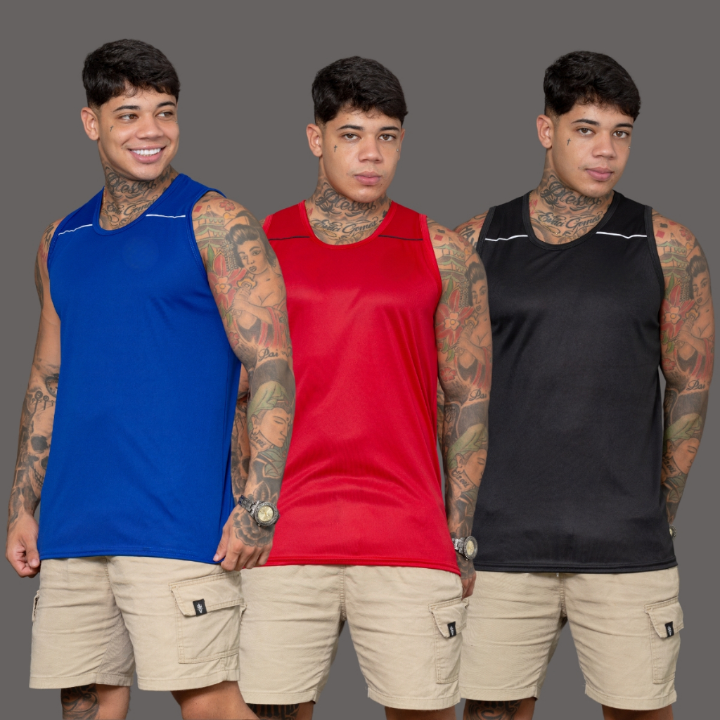 Kit 3 Regata Masculina Dry Fit Basica Academia