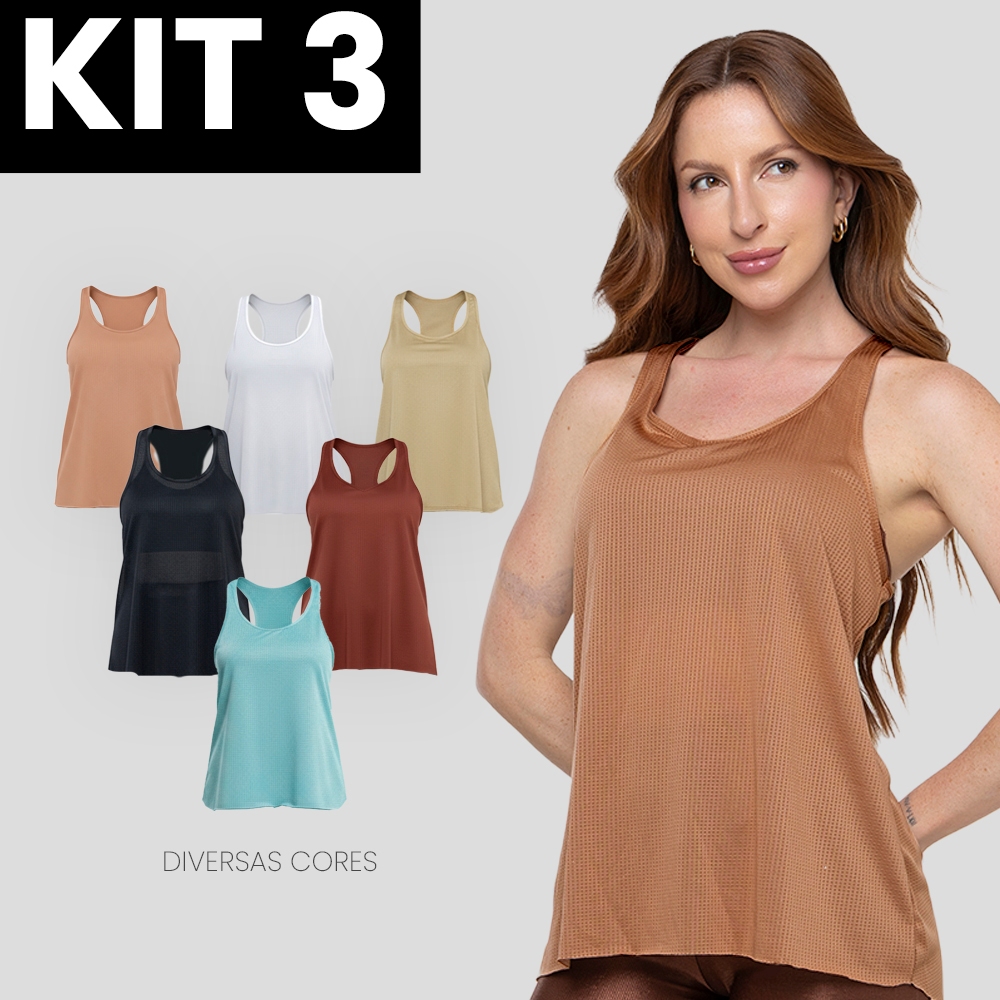 Kit 3 regatas básicas lisas modelo nadador corte a fio - academia