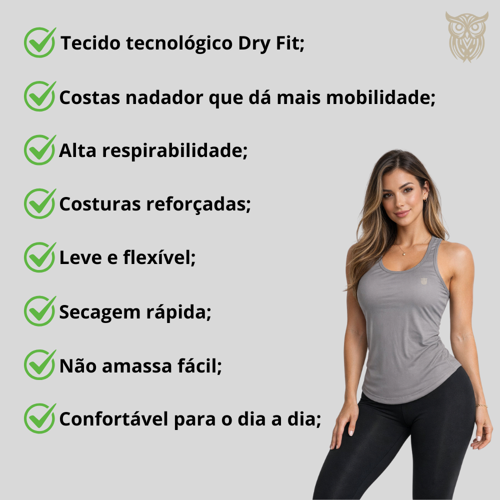 KIT 3 REGATAS Tabela de medidas: Comprimento | Largura P 62cm 40cm M 63cm 42cm G 66cm 46cm GG 68cm 48cm Regata feminina Dry Fit com costas nadador, perfeita para quem busca conforto e desempenho. Leve, fresca e com secagem rápida, mantém o corpo seco até nos treinos mais pesados. Estilo e performance em uma só peça! A regata Dry Fit costas nadador oferece caimento perfeito, liberdade de movimento e tecido respirável para acompanhar sua rotina ativa. Ideal para academia, caminhada ou dia a dia. A regata feminina Dry Fit é macia, não esquenta e tem tecnologia que ajuda na evaporação do suor. Conforto do começo ao fim do treino. Treine com mais leveza! Regata costas nadador em Dry Fit, tecido tecnológico, toque suave e ajuste que valoriza o corpo sem apertar. Funcional e estilosa! A regata Dry Fit feminina garante ventilação, mobilidade e secagem rápida, deixando você confortável e confiante em qualquer atividade.