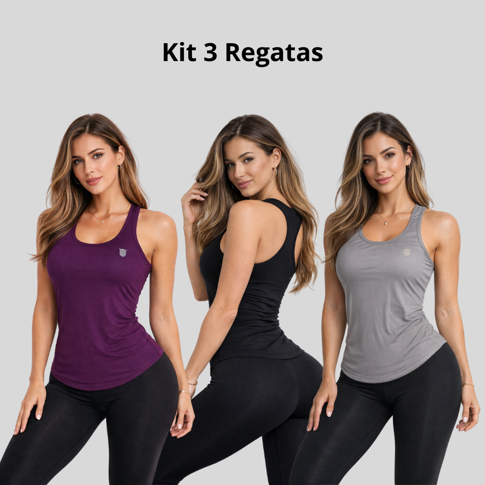 KIT 3 Regatas Dry fit Costas nadador Feminina Academia Fitness Verão