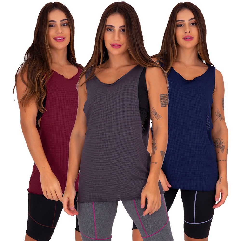 Kit 3 Regatas Feminina Academia Dry Absorve Suor
