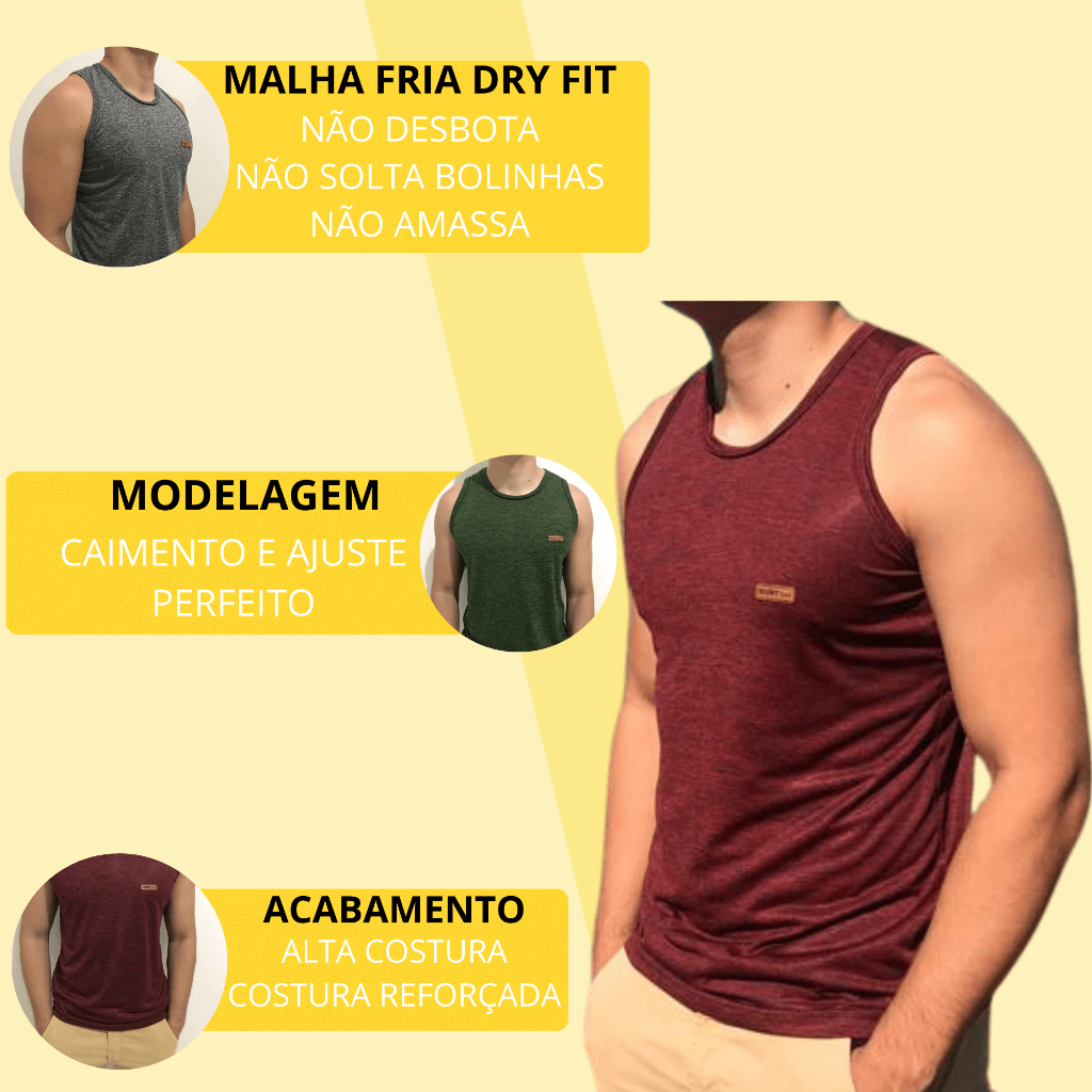 Kit 3 Regatas Masculinas Dryfit Camiseta de Academia Masculina Treino Blusa sem Manga
