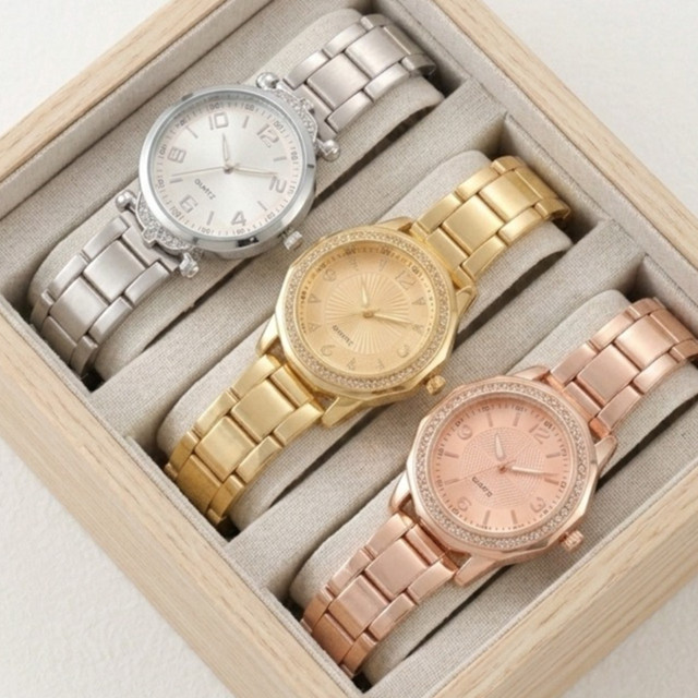 Kit 3 Relogios de Pulso Luxo com Mostrador Fino Feminino Minimalista Movimento Quartzo