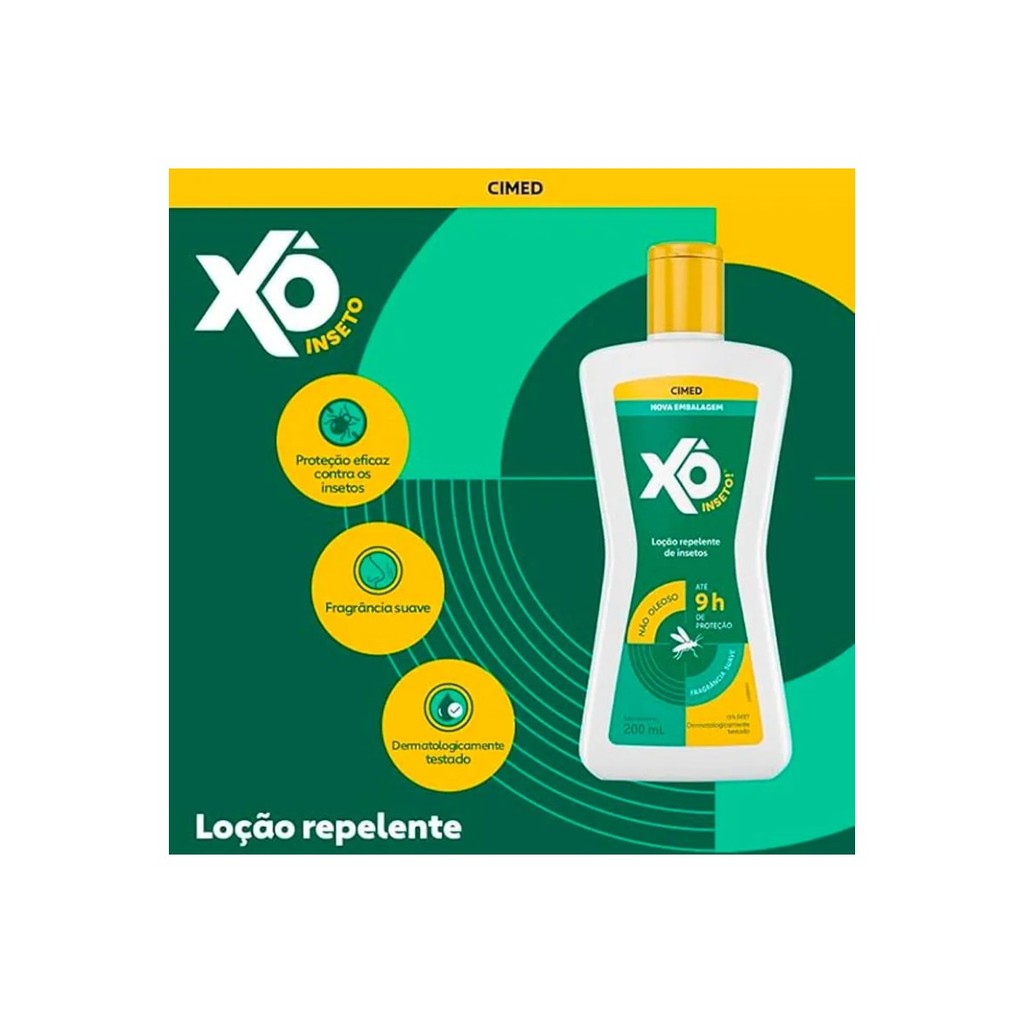 Kit 3 Repelente Xô Inseto Loção 200ml – Cimed | Proteção Prática contra Mosquitos e Insetos O Repelente Xô Inseto Loção da Cimed foi desenvolvido para auxiliar na proteção da pele contra mosquitos e outros insetos, sendo indicado para uso diário por toda a família. Sua formulação permite aplicação confortável, ajudando a proteger a pele em atividades ao ar livre, passeios, viagens e momentos de lazer. Com textura leve, não oleosa e de rápida absorção, a loção espalha facilmente e não deixa a pele pegajosa ou com resíduos. É uma opção prática para quem busca facilidade de aplicação e conforto no uso diário. Pode ser utilizado por adultos e crianças acima de 2 anos, sempre com supervisão de um adulto no caso de uso infantil. Destaques do Produto: • Ajuda na proteção contra mosquitos e insetos; • Textura leve, de rápida absorção; • Não deixa a pele oleosa ou pegajosa; • Formato loção, fácil de aplicar e espalhar; • Indicado para uso diário; • Embalagem de 200 ml, ideal para uso familiar. Modo de Uso: Aplicar uma camada uniforme sobre as áreas expostas da pele. Reaplicar conforme necessidade, especialmente após contato com água, transpiração excessiva ou longos períodos ao ar livre. Informações Adicionais: • Dermatologicamente testado; • Uso externo. Aviso Legal: • Evitar contato com olhos, boca e mucosas; • Não aplicar sobre ferimentos ou pele irritada; • Conservar em local fresco e ao abrigo da luz; • Manter fora do alcance de crianças; • Uso sob supervisão de um adulto quando aplicado em crianças. Imagens meramente ilustrativas. Todas as informações divulgadas são de responsabilidade exclusiva do fabricante/fornecedor.