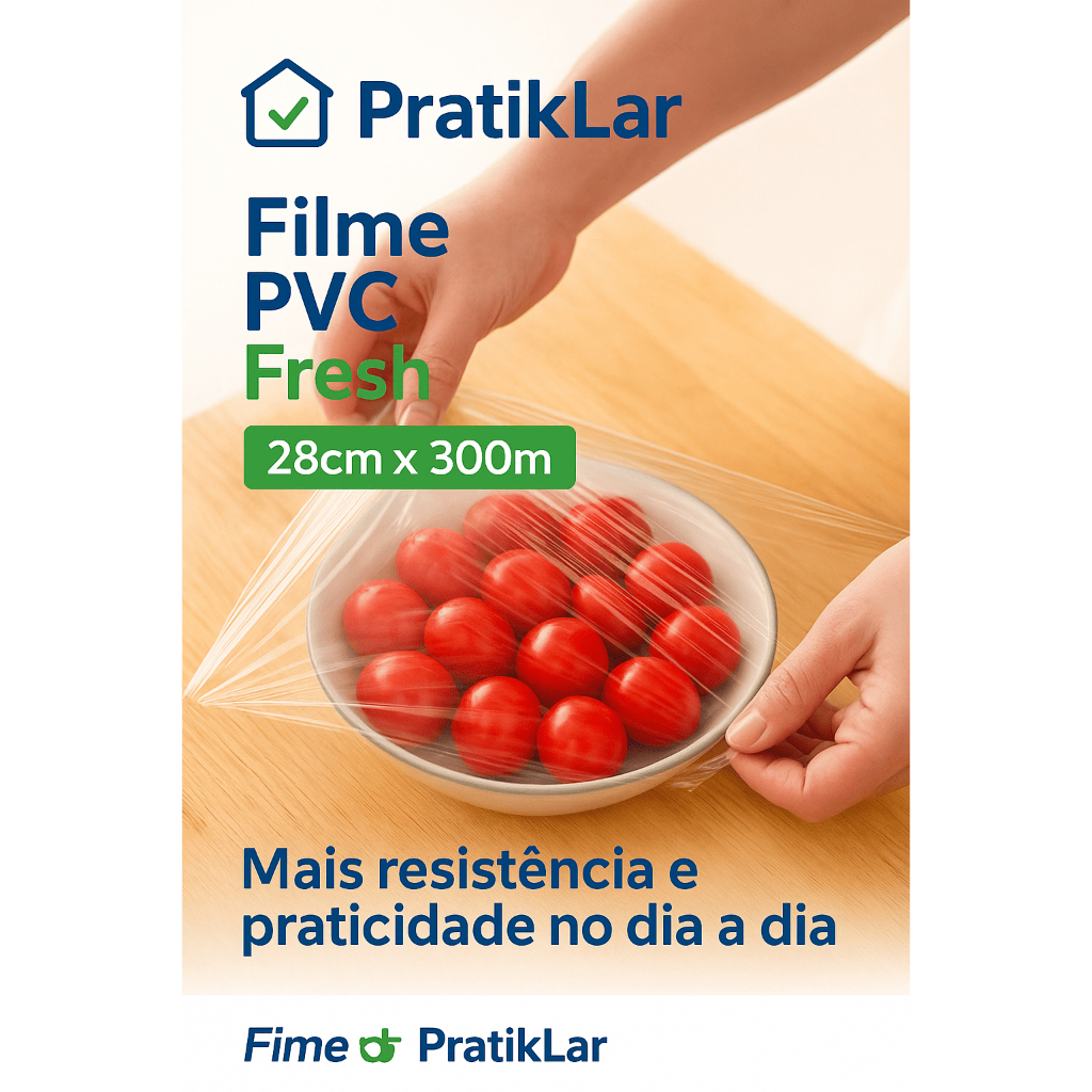 Filme PVC Esticável Transparente – Proteção e Conservação de Alimentos Também conhecido como plástico-filme ou papel-filme transparente, o Filme de PVC Esticável é ideal para manter alimentos frescos por mais tempo. Com alta resistência e excelente vedação, ele protege os alimentos tanto dentro quanto fora da geladeira, além de ser atóxico e sem cheiro, garantindo segurança no uso. Por ser totalmente transparente, você consegue visualizar os alimentos sem precisar desembalá-los, facilitando o dia a dia na cozinha. Este produto é versátil e indicado para diversos usos, não apenas em cozinhas domésticas ou profissionais, mas também em setores variados, como: Estúdios de beleza Estúdios de tatuagem Hortifrutis Açougues Padarias e supermercados Oficinas mecânicas, para proteção de volante, bancos e objetos Especificações do produto: Quantidade: 1 rolo Largura: 28 cm Comprimento: 300 m Espessura: 8µ (micras) O Filme de PVC Esticável é a solução prática e eficiente para conservar alimentos e proteger objetos, tornando seu dia a dia mais organizado e seguro!
