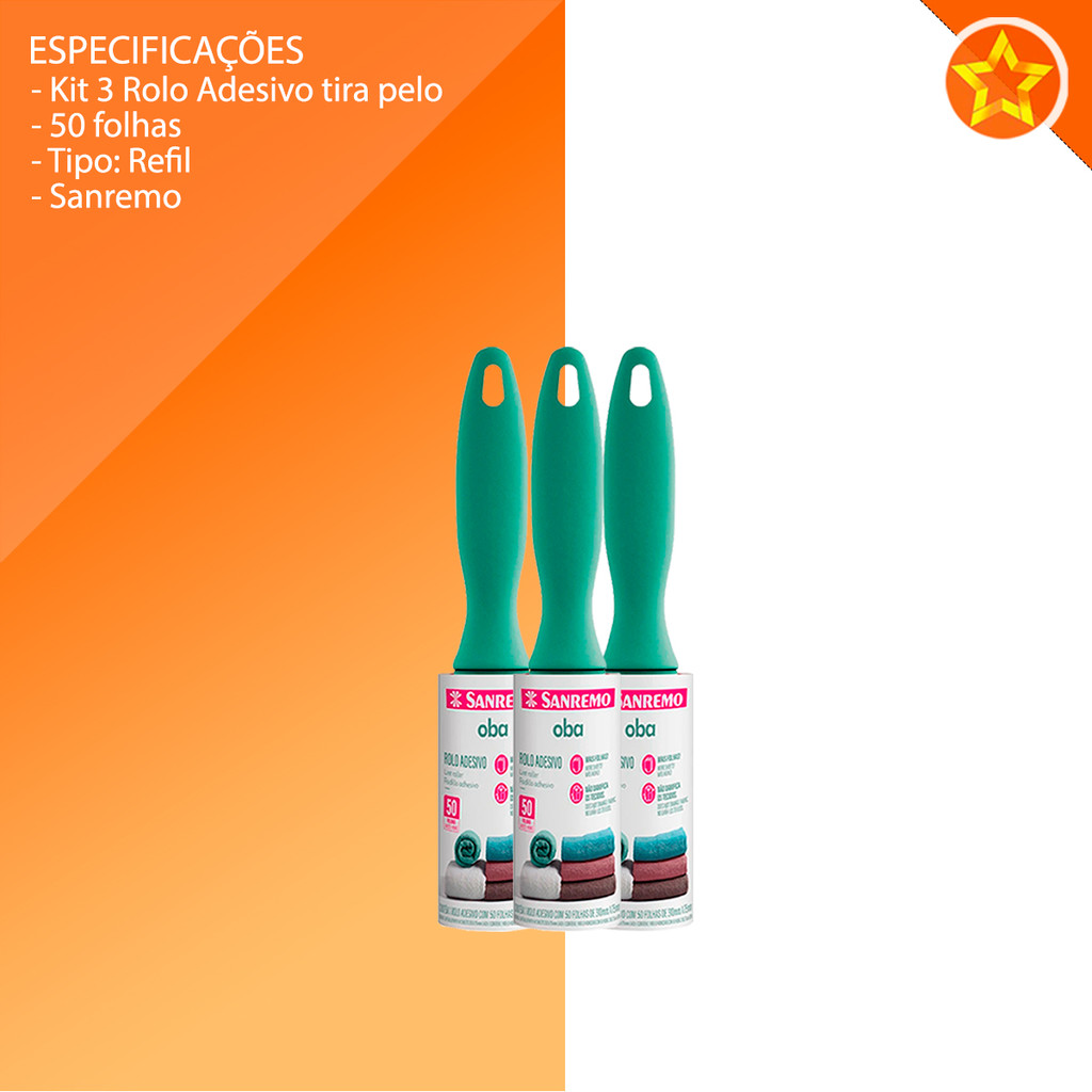 Kit 3 Rolos Adesivos para Pelos e Fiapos 50 Folhas