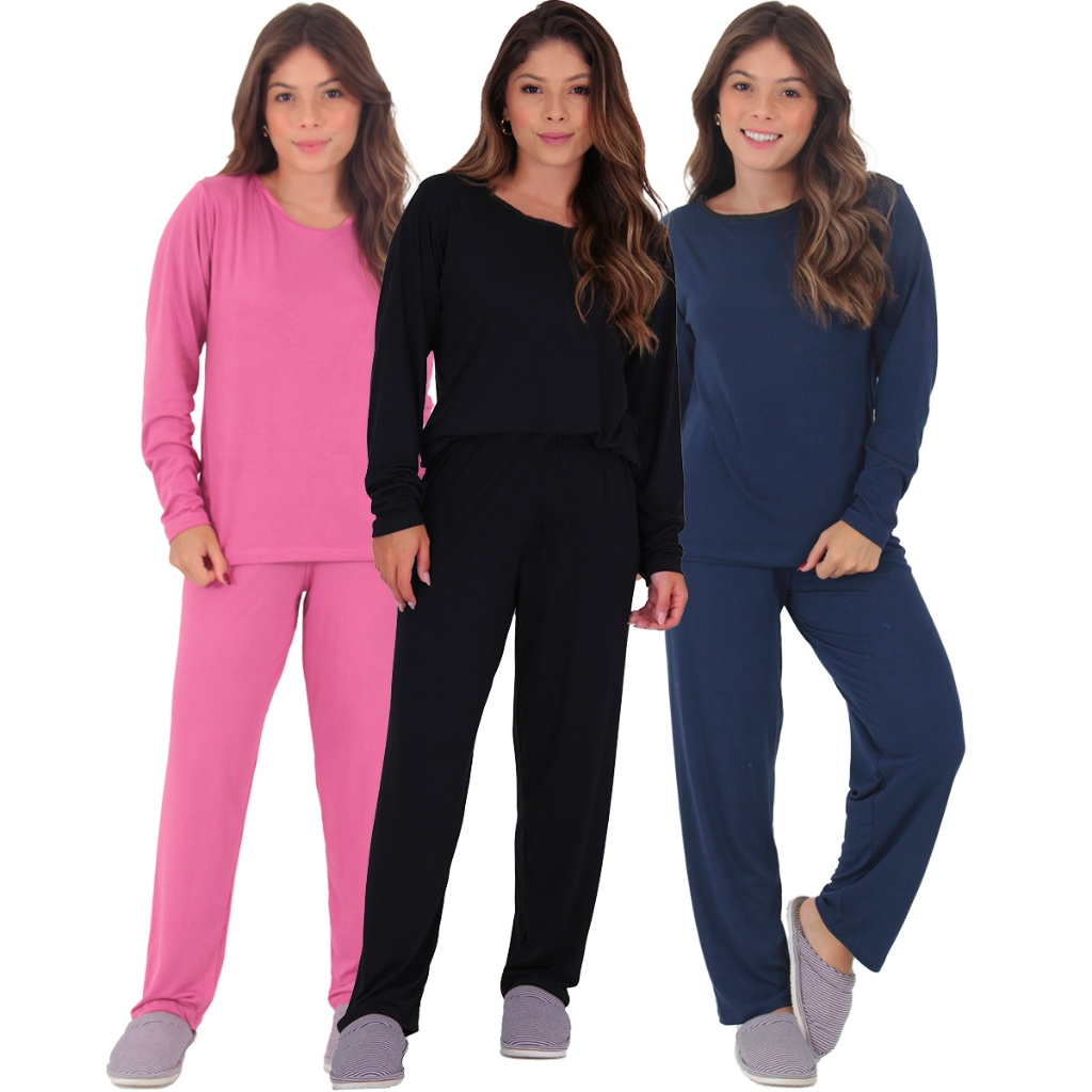 Kit 3 Roupas de Dormir Manga Longa Thayla Outono/Inverno