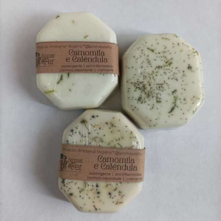 | Kit 3 Sabonete Artesanal Cicatrizante de Camomila e Calêndula este produto | R$ 35,99 | 50% | 4.9/5 | 5 |