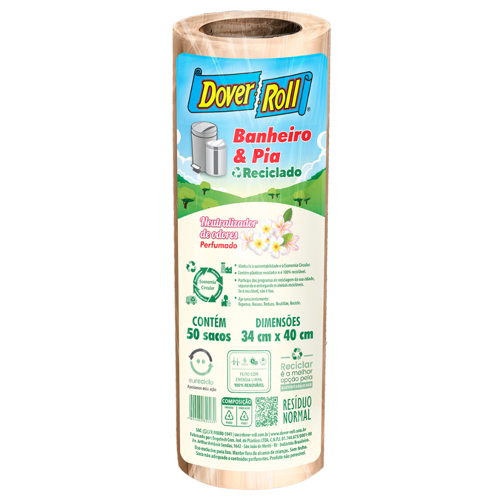 Kit 3 Sacos Para Lixo Banheiro e Pia Odor Defense Reciclado 34x40cm 50un - Dover Roll