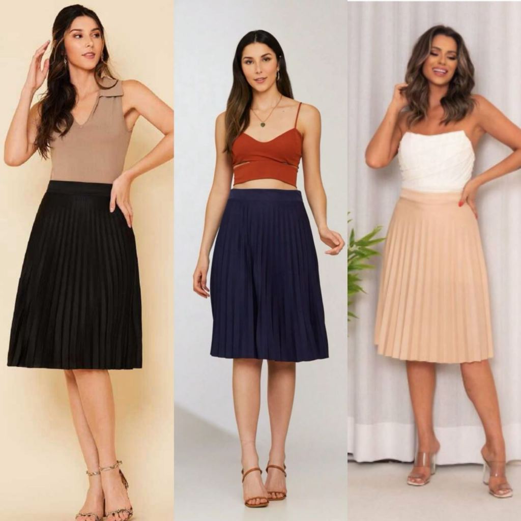 Kit 3 Saia Midi Plissada Tendência Evangélica
