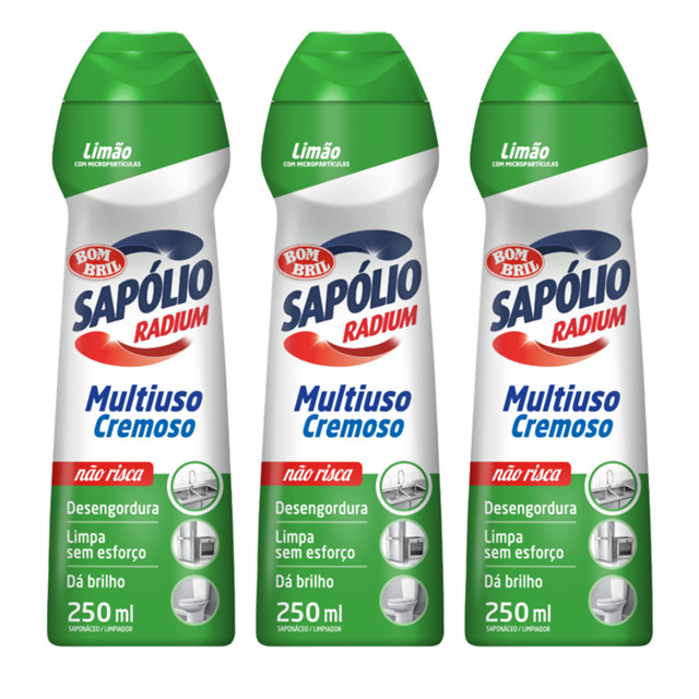 | Kit 3 Sapólio Radium Multiuso Cremoso Limão 250ml este produto | R$ 39,91 | 13% | 4.9/5 | 1 |