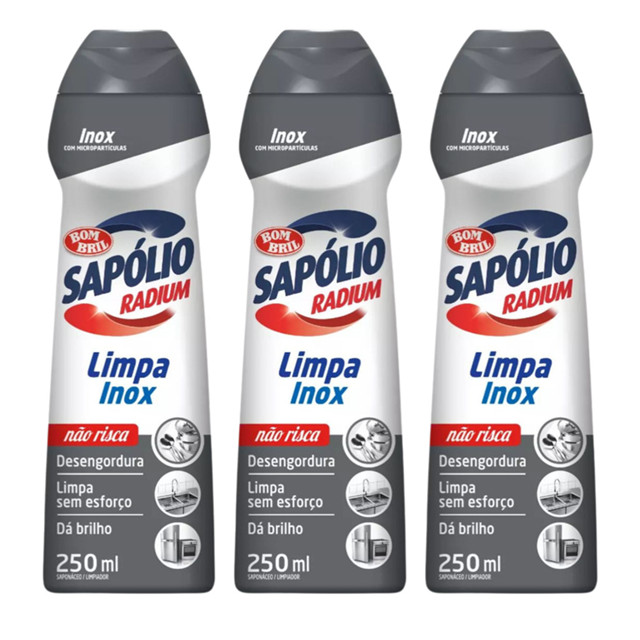 Kit 3 Sapólio Radium Multiuso Cremoso Limpa Inox 250ml