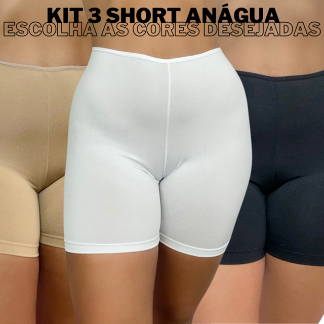 KIT 3 Segunda Pele Anágua Liso Feminina Short Básico