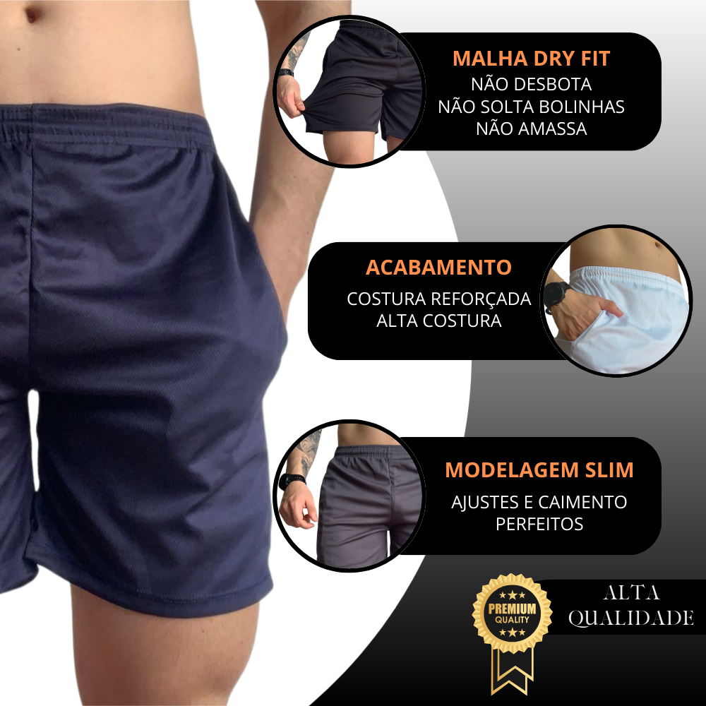 Kit 3 Shorts Dry Fit Masculino Academia Corrida Treino Bermuda Esportiva Elastano Leve Confortável