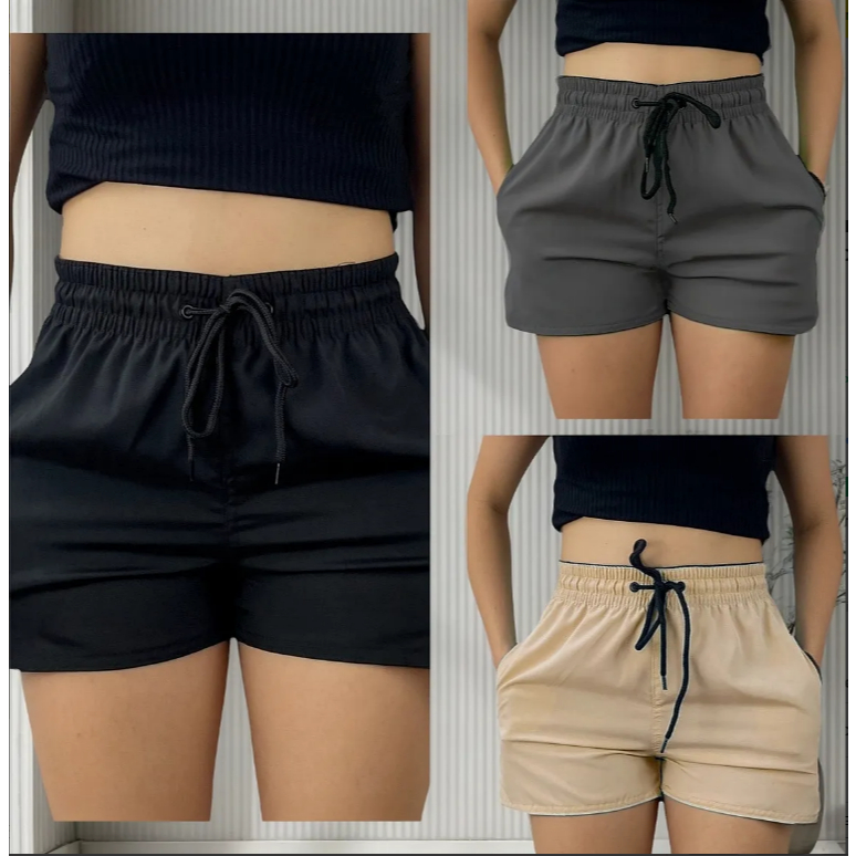 KIT 3 shorts feminina tactel elastano moda praia treino secagem rapido com 2 bolsos lateral