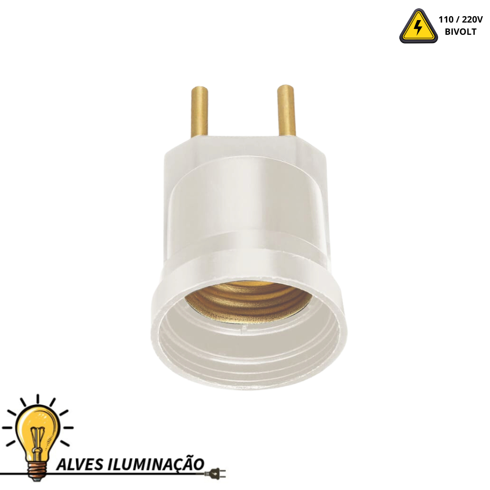 Kit 3 Soquetes Adaptador Bocal E27 Plugue Pino Macho Porta Lâmpada Bivolt Termoplástico