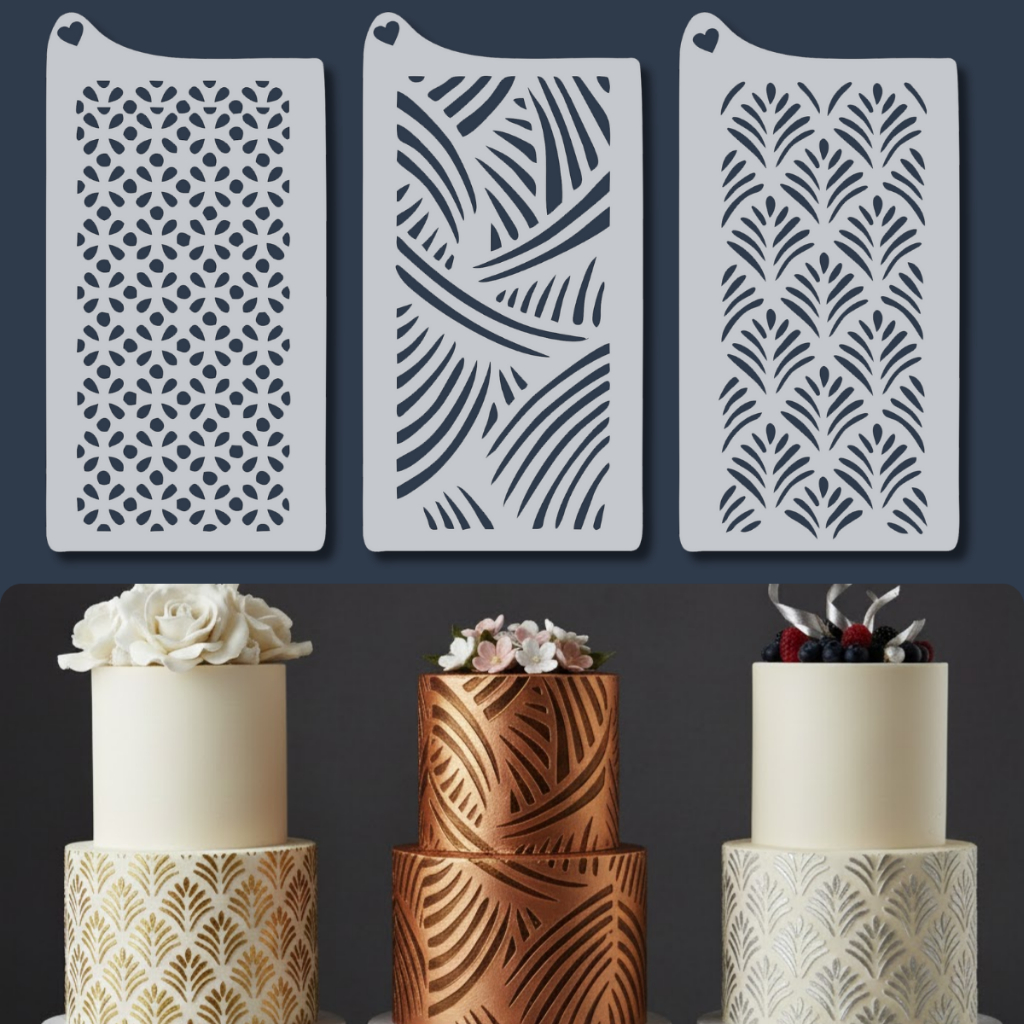 Kit 3 Stencil Carimbo Texturizador para Bolos Fondant Biscoitos Molde Plástico Relevo Confeitaria