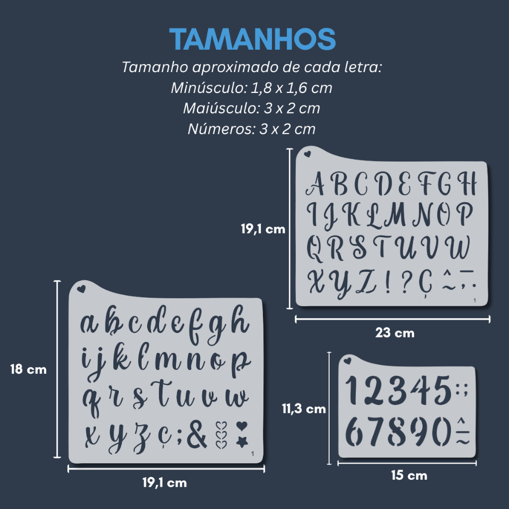 Kit 3 Stencil Moldes Mini Alfabeto + Números Abecedário Letras para Artesanato Tecido Pano Pintura