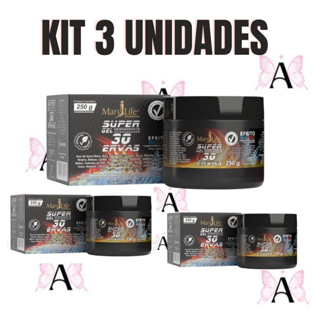 | Kit 3 Super Gel 30 Ervas 250g Massagem Atleta Academia Relaxament... este produto | R$ 39,99 | — | 4.9/5 | 178 |