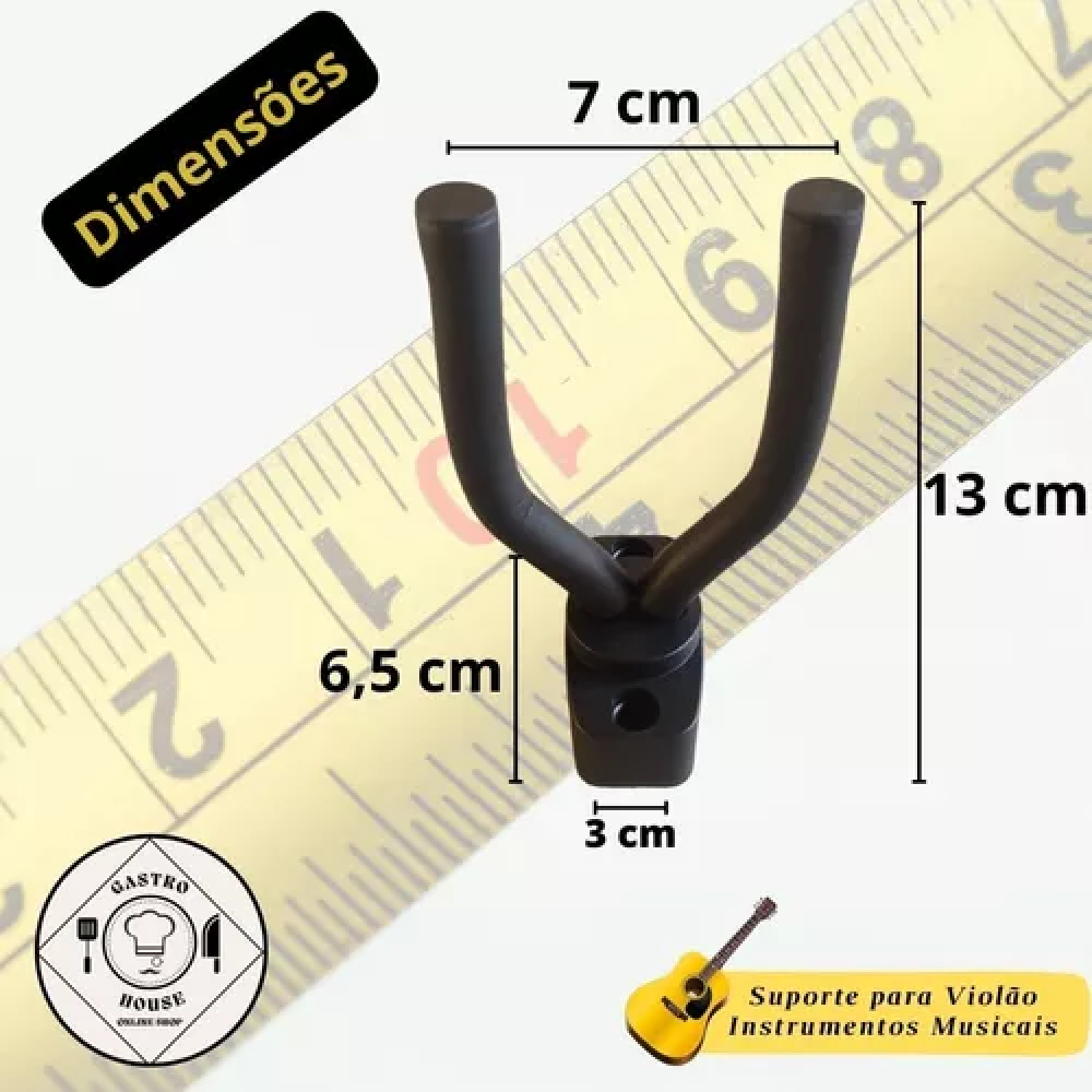 SUPORTE DE PAREDE PARA VIOLINO, VIOLÃO GUITARRA, UKULELE, VIOLA, BANJO... Otimize seu espaço e mantenha seus instrumentos seguros e acessíveis com nosso suporte multiuso. Projetado para violões, ukuleles, guitarras e muito mais, este suporte robusto e versátil é a solução perfeita para organizar sua coleção de instrumentos de forma conveniente e eficiente. Com design durável e ajustável, proporciona uma exibição elegante e protegida para seus preciosos instrumentos, permitindo que você liberte sua criatividade musical com facilidade. Além de oferecer suporte para uma variedade de instrumentos musicais, este produto inteligente também é ideal para armazenar itens domésticos, como vassouras, rodos e outros utensílios de limpeza. Com sua capacidade multiuso, ele permite que você mantenha sua casa organizada e livre de bagunça, oferecendo praticidade e eficiência em um único suporte. Assim, você pode desfrutar da conveniência de ter todos os seus instrumentos e itens de limpeza facilmente acessíveis e organizados em um só lugar. Enviamos 2 Parafusos e 2 Buchas nosso envio é imediato após a confirmação do pagamento Boas Compras