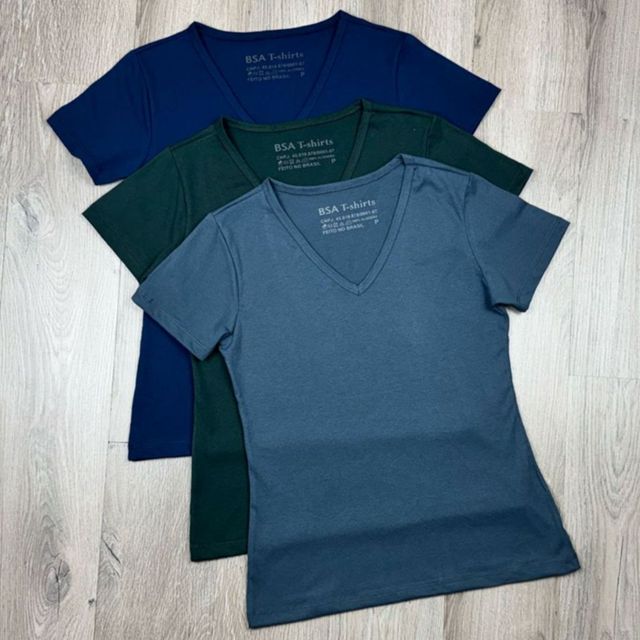 Kit 3 T-shirt Gola V Camiseta Blusinha Feminina Lisa Básica 100% Algodão