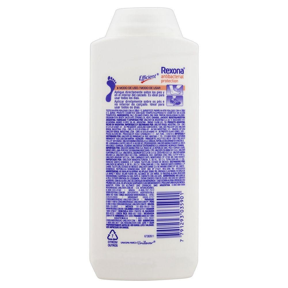 O Kit contém: 3 Talcos Desodorantes para Pés Rexona Fresh com 100g cada. • O Talco Desodorante para pés Rexona Fresh mantém seus pés secos e protegidos por até 48 horas, dentro e fora de casa • O Talco Desodorante para pés Rexona Fresh possui tripla ação contra o chulé, possui ação antibacteriana, tecnologia com poder de absorção e uma fragrância com notas herbais e florais de longa duração • Modo de usar: Aplique o Talco Desodorante Rexona diretamente sobre os pés e no interior do calçado. Ideal para o uso diário. Combine com a linha Desodorante Rexona Pés para uma proteção completa • O Talco Desodorante para pés Rexona Fresh mata 99,9% das bactérias* com sua ação antibacteriana, deixando os seus pés secos e protegidos por 48 horas • O Talco Desodorante antibacteriano Rexona Fresh não contém álcool** e pode ser utilizado no dia a dia • O Talco Desodorante para pés Rexona Fresh permite que você fique sempre protegido, não importa o que aconteça. Rexona não te abandona Rexona, a marca número um em desodorantes e antitranspirantes, apresenta a sua nova linha para os pés, visando mantê-los mais secos e protegidos, dentro e fora de casa. A linha de Talco Desodorantes para Pés Rexona possui Tripla Ação contra o chulé e mau odor, combatendo até 99,9% das bactérias com sua ação antibacteriana, elimina o mau odor graças à presença de ativos antitranspirantes e possui uma duradoura fragrância com notas herbais e florais. Mais proteção e menos preocupação. A fórmula exclusiva do Talco Desodorante para os pés Rexona Fresh ainda conta com matéria absorvente que mantém seus pés secos e garante até 48 horas de proteção e cuidado. Combine ainda com a aplicação do Desodorante Aerosol para Pés Rexona para uma proteção completa. Modo de usar: Aplique o Talco Desodorante para pés Rexona Fresh diretamente sobre os pés e no interior do calçado. Rexona acredita no poder do movimento e quer garantir a segurança e proteção para que você se sinta confortável para se movimentar cada vez mais. Use nossa linha completa de desodorantes para pés e sinta seus pés protegidos durante qualquer atividade. Porque Rexona não te abandona! *Teste padrão in vitro realizado com S. epidermidis. Produto cosmético sem ação terapêutica **Não contém álcool etílico