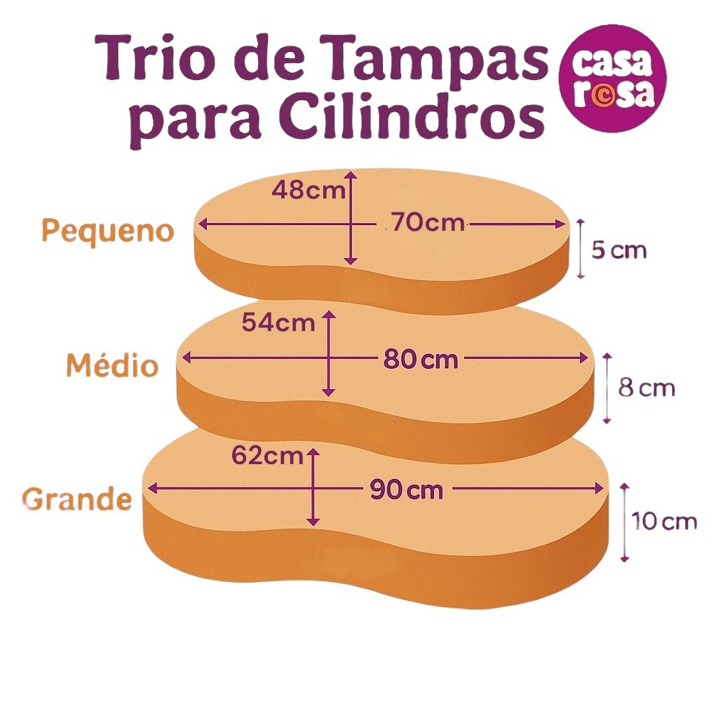 ✨ Trio de Tampos Orgânicos Decorativos em MDF – Modelo Feijão Transforme seus eventos com elegância e originalidade! Este Trio de Tampos Orgânicos foi desenvolvido especialmente para encaixar perfeitamente nos cilindros padrão (50x80 cm, 44x58 cm e 38x45 cm), proporcionando um toque sofisticado e moderno à sua decoração. Com design curvo e acabamento refinado, os tampos são ideais para destacar bolos, arranjos florais, personagens, lembrancinhas ou peças temáticas em festas e eventos. ⸻ 🎯 Medidas do conjunto: • Grande: 90 x 62 x 10 cm (altura) • Médio: 80 x 54 x 8 cm (altura) • Pequeno: 70 x 48 x 5 cm (altura) ⸻ ⚠️ Atenção: • Os tampos são decorativos — não subir, não pisar e não sentar. • Capacidade máxima: até 15 kg distribuídos. • Cilindros vendidos separadamente. ⸻ 💡 Destaques do produto: • Feitos em MDF cru de alta qualidade • Design orgânico modelo feijão, tendência em decoração moderna • Encaixe perfeito nos cilindros padrão • Leves, resistentes e fáceis de posicionar • Perfeitos para festas infantis, casamentos, batizados, chás revelação e muito mais! ⸻ 🎉 Realce sua mesa principal com estilo, harmonia e praticidade. Crie composições encantadoras e surpreenda seus convidados com um visual digno de profissionais da decoração!