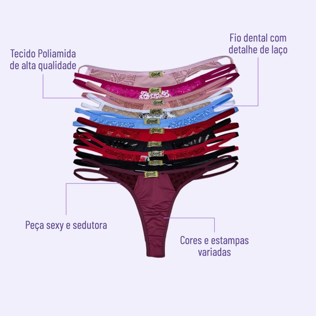 Detalhe em RENDA KIT vai com cores VARIADAS. Rápida ENTREGA para TODO BRASIL. COMPRA SEGURA, Fornecedor Nacional. Apresentamos a calcinha fio dental em tecido e renda de poliamida, uma peça incrivelmente sexy e sedutora que vai aumentar ainda mais a sua confiança e beleza.Com um design sofisticado, essa calcinha combina tecido e renda de poliamida para criar um efeito visual de tirar o fôlego. O fio dental confere um toque de ousadia e sensualidade à peça, tornando-a perfeita para momentos especiais e para quem quer se sentir ainda mais sexy e poderosa.O tecido e a renda de poliamida garantem o conforCalcinha Lingerie Sexy Fio Dental Super Fio Calcinhas to e a durabilidade dessa calcinha, fazendo com que ela seja uma opção perfeita para uso diário ou para ocasiões mais especiais. Além disso, a sua composição permite que a peça se ajuste perfeitamente ao seu corpo, realçando suas curvas e tornando você ainda mais irresistível. Disponível em diversas cores e tamanhos, essa calcinha é a escolha ideal para mulheres que buscam por lingerie de qualidade e estilo. Não perca a chance de experimentar a calcinha fio dental em tecido e renda de poliamida e descobrir o motivo pelo qual essa é uma das opções mais sexy e sedutoras do mercado. Adquira já a sua e se prepare para arrasar! OBS: Produto será enviado no tamanho escolhido, mas a estampa/desenho do tecido será de acordo com estoque. Qualquer dúvida chamar no chat.