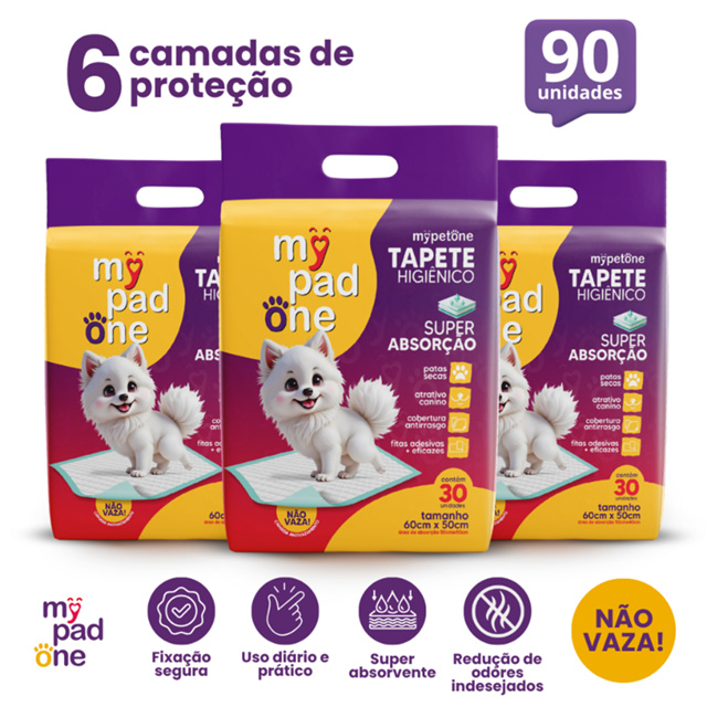 | Kit 3 Tapete Higiênico 90 Unidades Premium My Pad One Slim 60x50 cm este produto | R$ 99,90 | 14% | 5.0/5 | 3 |