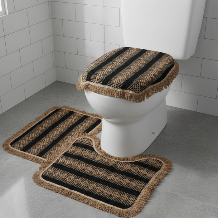 Kit com 3 Tapetes Para Banheiro 100% Algodão. 🔹 O que você recebe: 1 Tapete para frente do vaso sanitário 1 Tapete para a tampa do vaso 1 Tapete para pia ou área livre Deixe seu banheiro mais bonito e protegido com este kit de 3 tapetes com design moderno! Com estampas lindas e cores que combinam com diversos estilos de decoração. Ajudam a manter o ambiente seco. Evita escorregões. Produzidos com material de alta qualidade, são resistentes. Duráveis e PODEM ser LAVADOS sempre que necessário. ( Serão enviados na cor e estampa desejada que você escolheu )