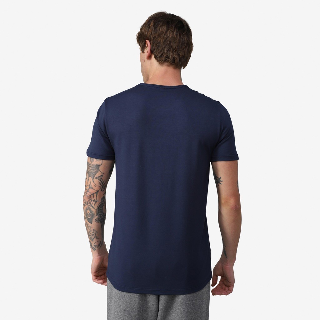 Camiseta de shape tradicional (reto) em Modal Anti Odor, com gola C (redonda) e mangas curtas. O Modal é uma matéria prima de base celulósica, 100% natural com toque sedoso e de alta qualidade. Não esquenta nem amassa. Absorve cerca de 50% mais água do que o algodão, característica que ajuda na transpiração da pele. A peça também possui acabamento Nanox Clean Ag+Fresh, eliminando odores desagradáveis. Esta tecnologia é hipoalergênica e dermatologicamente testada. Composição: 95% Modal 5% Elastano.