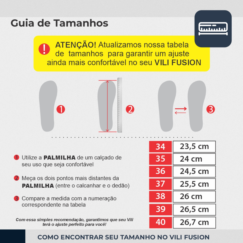 ✨Kit 3 Pares Tênis VILI Fusion ✨ 🌟 Desenvolvido para unir estilo, conforto e performance. Ideal para caminhadas, corridas e atividades do dia a dia! 💫 Design Vibrante & Alta Tecnologia Combinando opções de cores modernas como 💜 roxo profundo e 💖 rosa vibrante! Seu cabedal de malha respirável mantém os pés frescos e confortáveis 👟🌬️ 💥 Amortecimento e Controle Avançados Entressola de dupla densidade para absorção de impacto 🌈 Interior acolchoado e ajuste anatômico para conforto superior 😌 Sola antiderrapante para tração segura em qualquer terreno 🌧️🌄 ⚡ Leve e Flexível Ideal para quem busca desempenho com estilo – no esporte ou casual 👚🧘 Especificações Técnicas: 📋 Cabedal: Nylon respirável, oferecendo resistência e maciez 🌟 Palmilha: E.V.A. espumada para máximo conforto 🦶 Solado: Micro Expandido Antiderrapante, com alta durabilidade ⚙️ Estilo: Tênis Casual Esportivo 👟 Marca: VILI ✨ Gênero: Unissex 👤👥 📝 Forma Normal: Recomendamos comparar as medidas com uma palmilha que você já usa 👇 📏 Numeração – Medida da Palmilha: 34.................23,5 cm 35.................24,0 cm 36.................24,5 cm 37.................25,5 cm 38.................26,0 cm 39.................26,5 cm 40.................26,7 cm Cuide bem do seu VILI Fusion: 🧼👟 1️⃣ Limpe com um pano úmido e sabão neutro, evitando lavar por imersão para não danificar o material. 2️⃣ Evite produtos químicos agressivos que possam danificar o calçado. 3️⃣ Deixe secar à sombra para evitar manchas 🌞 Durabilidade e estilo em cada passo!