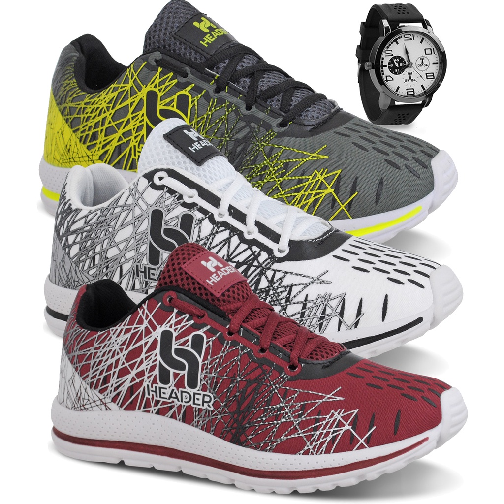 Kit 3 Tênis Masculino Header Spider Esportivo Mais Vendido Promoção + Relógio