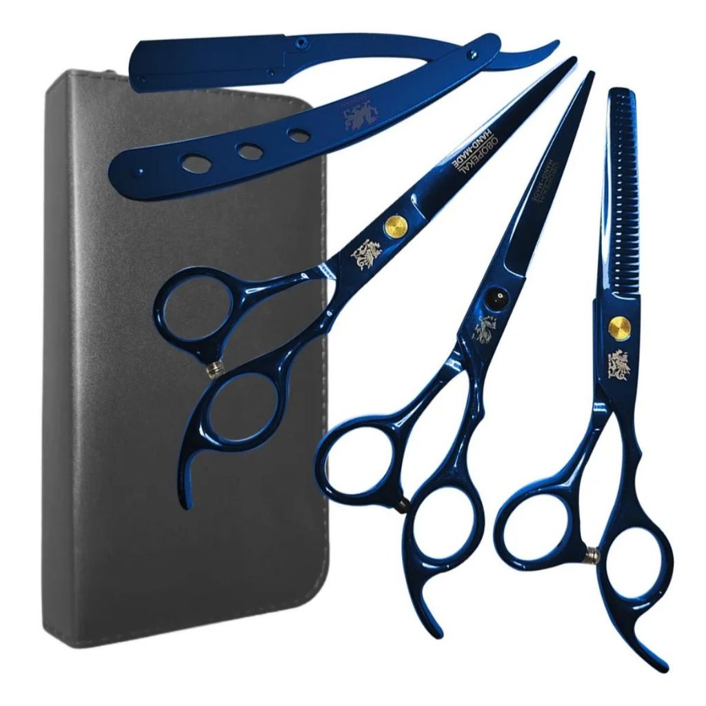 Para realizar um bom corte de cabelo, você precisa ter um equipamento apropriado que o ajude a fazer o trabalho direito. Tesouras de corte de cabelo profissionais são uma obrigação – elas fazem toda a diferença no acabamento de um bom corte. O kit contém: 01 - Tesoura Fio Navalha 6.0 01 - Tesoura Desfiadeira 6.0 01 - Tesoura Fio Laser 6.0 01 - Navalha De Barbear 02 - Pentes 01 - Estojo