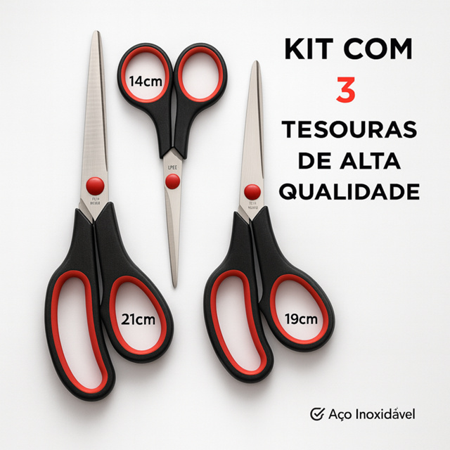 | Kit 3 ou 5 Tesouras Em Aço Inox Corte Costura Artesanato Domestico ... | R$ 10,99 | 78% | 4.5/5 | 2.8 mil |