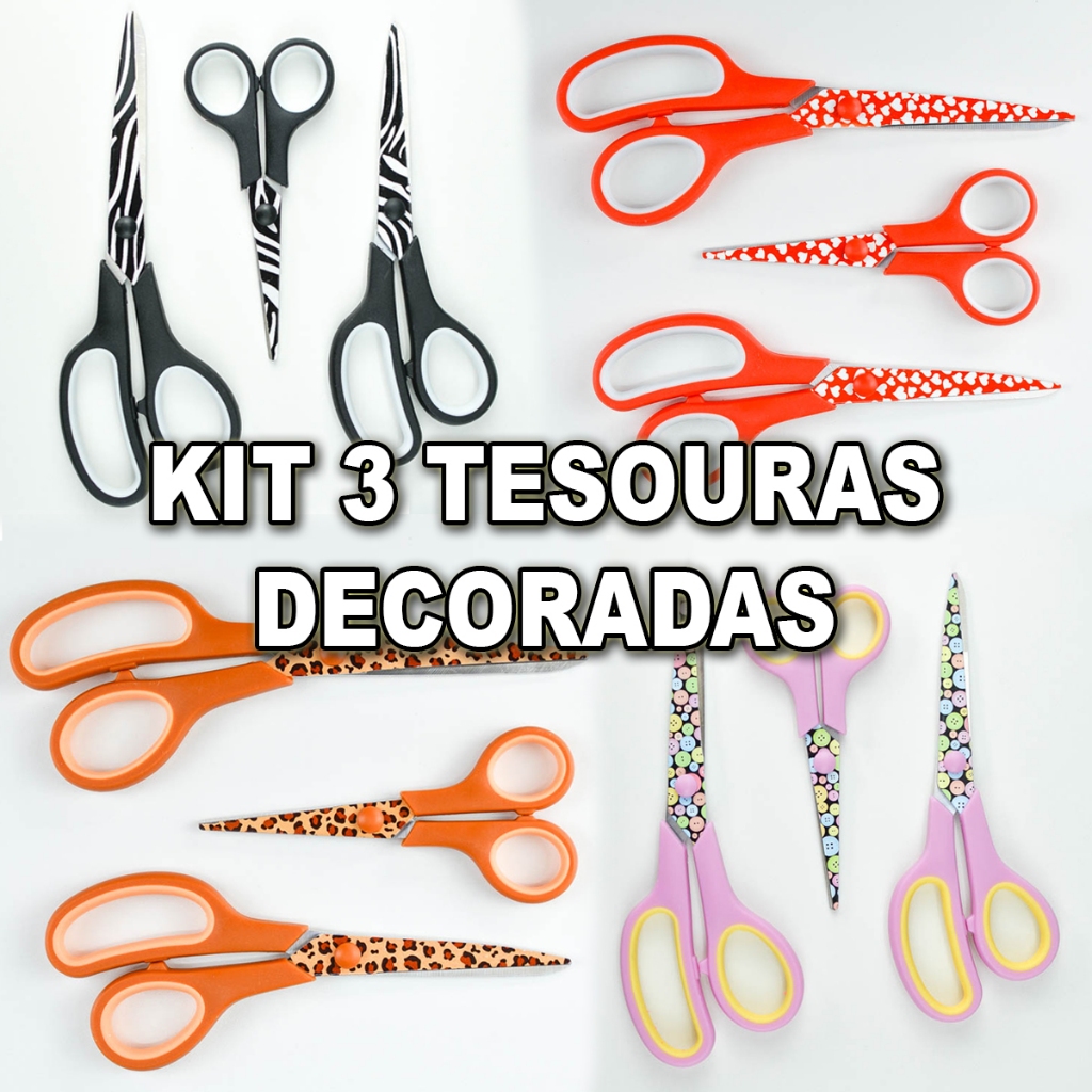 Kit 3 Tesouras Decoradas Corte e Costura, Artesanato, Patchwork e Papelaria em Aço Inoxidável